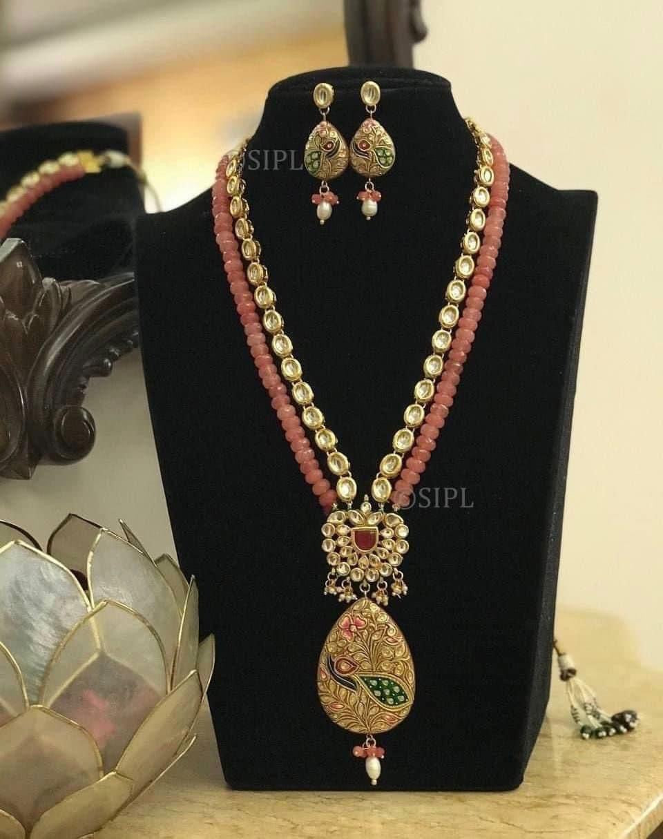 Showcasing stylish & Chic Malaa curated with fusion of kundan, onyx beads and Meenakari. Available in two hypnotizing variants.
